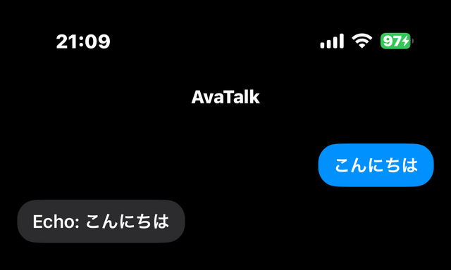 XcodeGenというツールでproject.ymlを書かせ、SwiftUIの最小チャットUIをゼロから組み立てていきます。10分ほどで、iPhoneの画面に「AvaTalk」と書かれた、まだ何もしゃべらないアプリが起動しました。