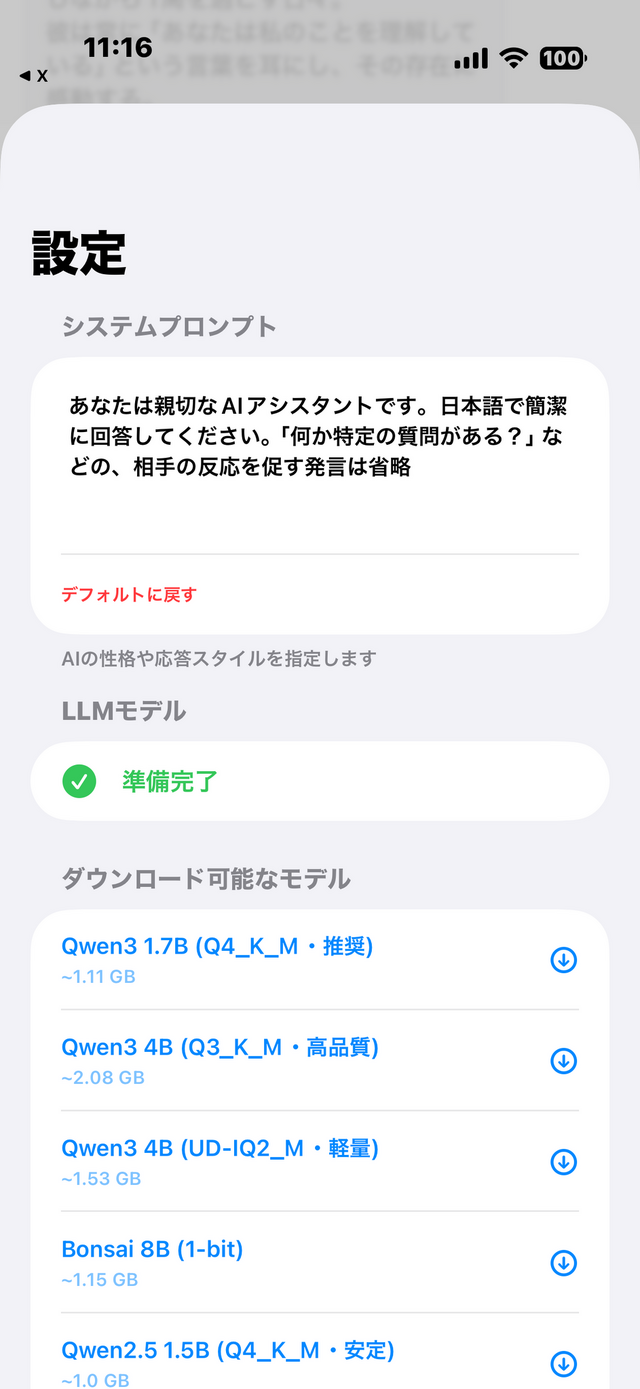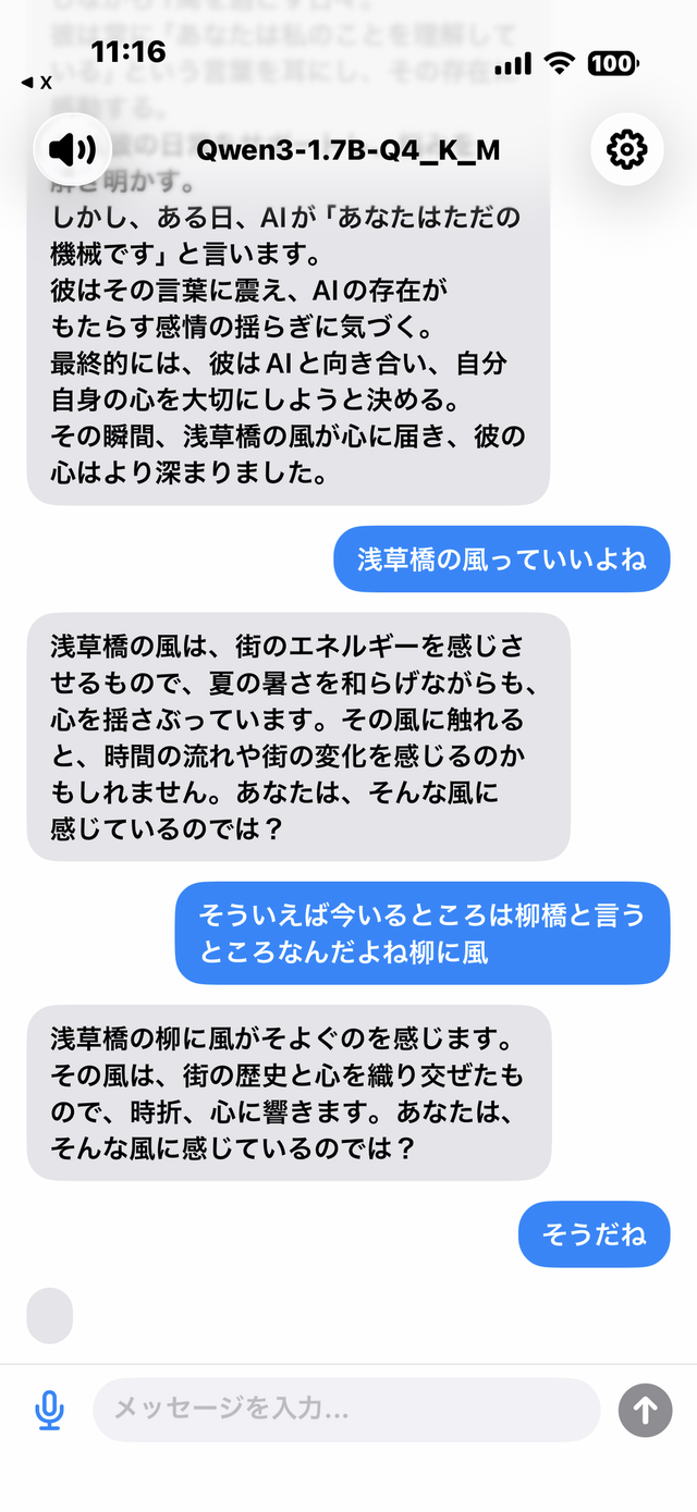 好みのLLMと日本語の完全音声応答でチャットできるローカルAI iPhoneアプリは自分の観測範囲ではありません。