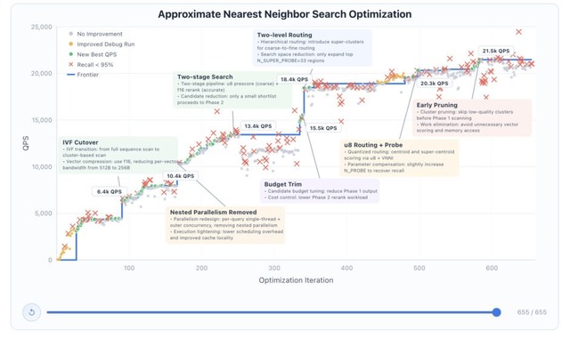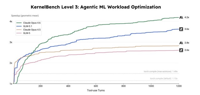 GLM-5.1の特徴は、長時間にわたるタスクで性能が落ちにくい点です。従来のモデルは使い慣れた手法を早い段階で使い切ってしまい、時間を与えても改善が頭打ちになる傾向がありました。GLM-5.1は問題を分解し、実験と検証を繰り返しながら戦略を修正し続けることで、数百ラウンド・数千回のツール呼び出しにわたって最適化を持続できます。