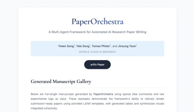 Googleの研究チームが、未整理の研究アイデアや実験ログから、国際会議にそのまま投稿できるレベルのAI研究論文(LaTeX形式)を自動生成するシステム「PaperOrchestra」を発表しました。