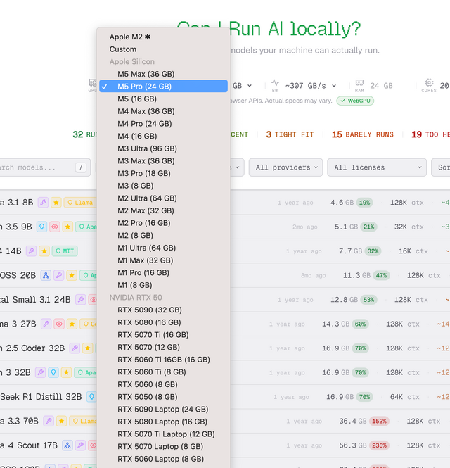 ▲Apple M5 Pro 24GBでのcanirun.aiトップ画面