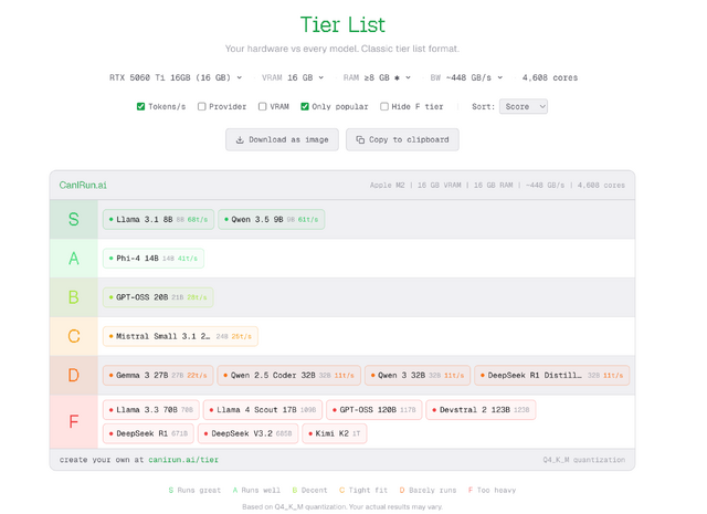開発者midudev氏が、手元のマシンでどのAIモデルが実際に動かせるのかを一瞬で判定できるWebサービス「CanIRun.ai」を公開しました。インストールや登録は一切不要、サイトにアクセスするだけでGPUやメモリを自動検出して、各モデルに対する動作判定を6段階で色分けして表示してくれます。