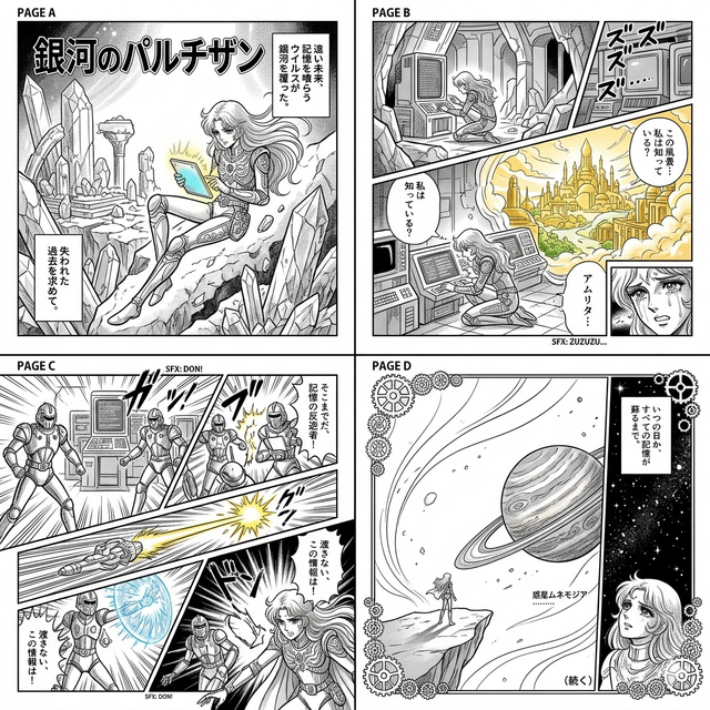 今回は、「花の24年組と呼ばれる少女漫画全盛期のSF漫画」、という雑な指定だけだったのですが、もっと細かくディレクションしたら、よりクリエイティブな作品ができるかもしれません。