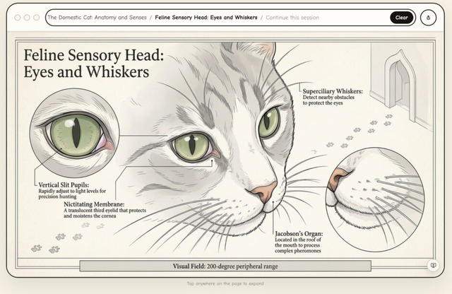 ▲1枚目の猫の説明画像の顔の部分をクリックすると、猫の顔付近を説明する画像が出力された