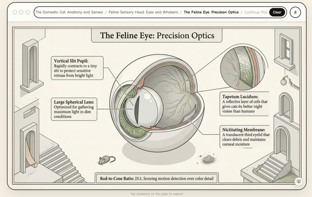 ▲2枚目の画像の目をクリックすると、猫の目がさらに詳細に説明された画像が出力された