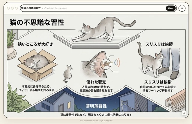 ▲「猫の習性を日本語で説明して」と入力した際に出力された画像
