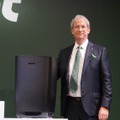 ▲空気清浄機「Klaara P7 Pro」(直販価格16万9800円)をお披露目するコリン・アングルCEO