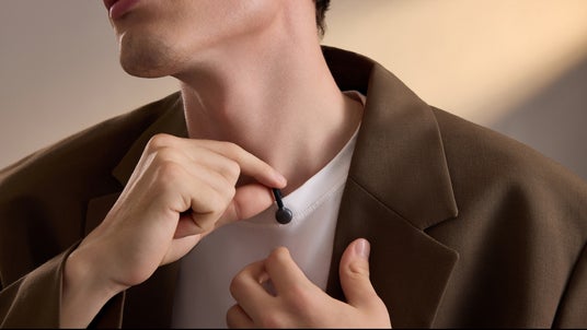 Lark M2Sは、内蔵マイクがわずか1.3cm x 0.63cm、小指の爪よりも小さいサイズで、たった7gという軽量設計を実現。ロゴのないシンプルなデザインにより、衣装に馴染みやすく、目立たず簡単に隠すことができます。