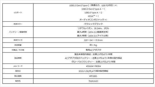 この度、エムエスアイコンピュータージャパン株式会社は、15.6インチ大画面ディスプレイを備えつつ、Core(TM) i5、メモリ 16GB、SSD 512GBを採用し、税込10万円以下のリーズナブルな価格を実現したビジネスノートPCのTSUKUMO限定モデル「Modern-15-B13M-5827JP」を2025年1月30日(木)より発売いたします。