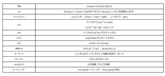 ・Modern 15 B13M シリーズ製品ページ:https://jp.msi.com/Business-Productivity/Modern-15-B13X