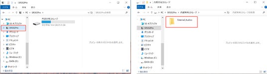 2. PCのエクスプローラーで「SR302Pro」を開き対象の音声ファイルをExternal_Audiosにドロップ。