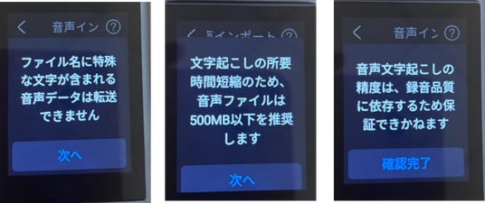 ※音声インポート」をタップすると、初回のみ音声取り込み機能のガイド画面が表示されます。