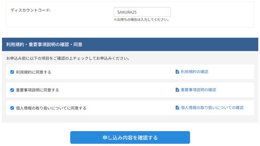 ディスカウントコード入力例