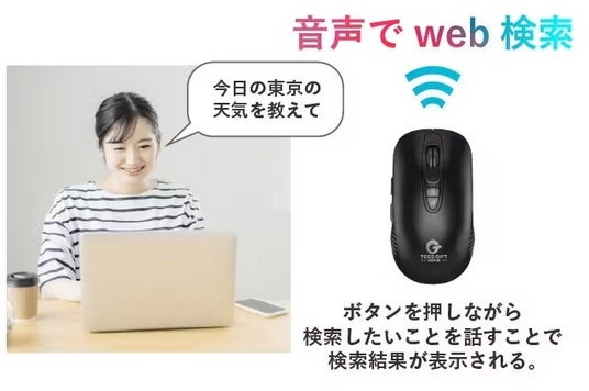 マウス本体に人の声を捉える収音マイクを内蔵しており、ボタンを押して話しかけるだけで、音声を認識し自動でタイピングしてくれます。