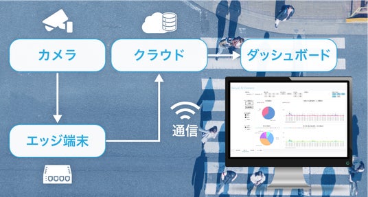 AI画像解析技術を搭載した専用のエッジ端末でカメラ映像の解析を行い、ダッシュボードで可視化します。