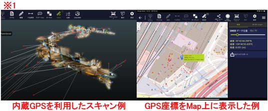 - 本体内蔵GPSと連動しながら点群スキャンが可能(Dot3D PRIME,PRO)※1