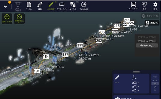 DPI/Dot3Dシリーズ製品の活用分野は、製造業界での大型設備や工場管理の3D化、建築業界での建築物測定、測量データ連動、土地家屋測量時の3D点群取得、土木測量等の3Dデータと測量値連動、VR/XRでの3Dデータ作成等幅広い業種で活用を見込んでいます。