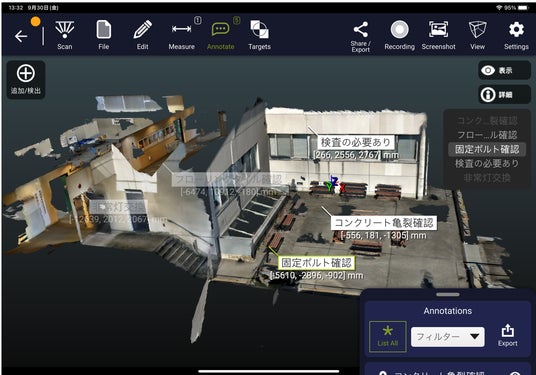 iPhone Pro/Pro Max・iPad Pro内蔵のGPSと連動しスキャンした結果例