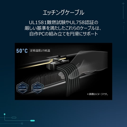 高品質で柔軟な素材で作られたこれらのエッチングケーブルは、取付時に簡単に曲げることができ、曲げた状態でも安全限界より50°C低い温度で動作します。これらのケーブルは、UL1581の耐火試験およびUL758認証の厳しい基準を満たしており、スムーズなPC自作体験と優れた安全性を保証します。