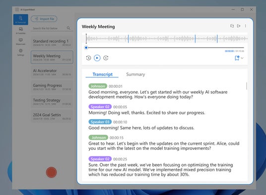 AIノイズキャンセリング機能とAIカメラ機能がオンライン会議をより快適に行えるようサポートし、AI ミーティング議事録機能が会議の内容を記録、要約、必要なら翻訳します。すべての処理はデスクトップパソコン上で行われるためデータが外部に送られることはなく、高いセキュリティレベルも実現しています。ASUS AI ExpertMeetにより、会議に付随するさまざまなことを気にする必要がなくなり、会議の内容にのみ集中することができるようになります。
