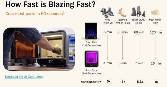 新しい2次硬化機「Form Cure (2nd Generation)」を、本日 3/24(月)にリリースしたことを発表します。硬化用LEDの数とパワー増強により、大幅に処理時間を短縮しました。また、一度に処理できるサイズや数量も向上しています。