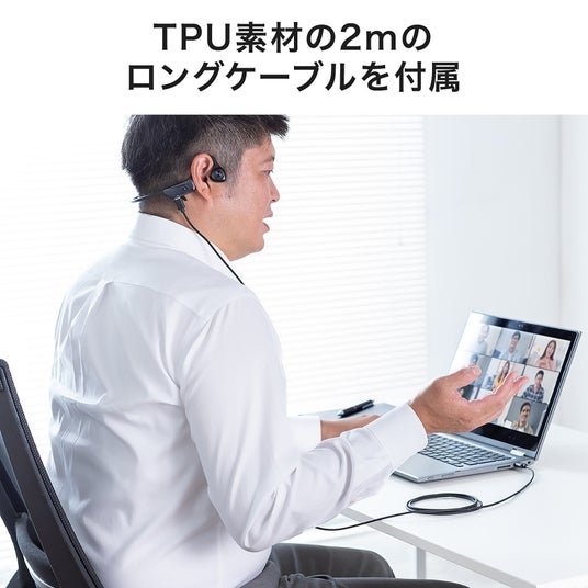 オープンイヤー型のデザインを採用し、長時間の使用でも耳への負担を軽減。周囲の音を聞きながら作業ができるため、WEB会議中でも同僚からの声掛けに気づけます。安全性を重視する方や、集中しすぎて周りが見えなくなるのを防ぎたい方に最適です。