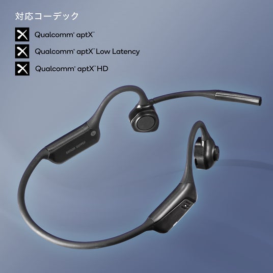 高音質なapt X、低遅延なapt X LL、最高音質のapt X HDのコーデックにも対応したBluetoothとUSB(有線)接続の2WAY仕様で、耳を塞がないオープンイヤーヘッドセット