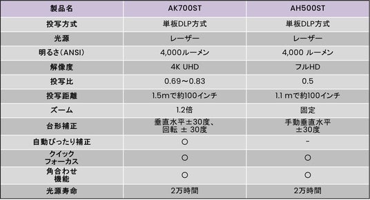 「自動ぴったり補正」機能4K UHD解像度モデル「AK700ST」&史上最短焦点設計モデル「AH500ST」
