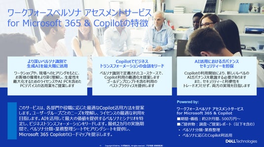 デル・テクノロジーズ株式会社(本社:東京都千代田区、代表取締役社長:大塚 俊彦、以下、デル・テクノロジーズ URL:https://www.dell.com/ja-jp)は、最新のPCとともにCopilotの活用により業務の生産性をさらに向上させる新サービス「Microsoft 365 Copilot アドバイザリーサービス」と「ワークフォースペルソナアセスメントサービス for Microsoft 365 & Copilot」を本日より提供開始しました。
