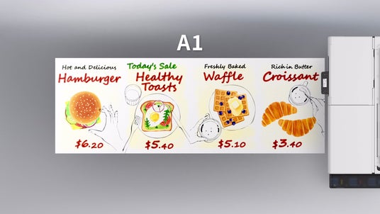 A4サイズのフラットベッドスキャナーを標準搭載し、A4サイズなどの原稿から、A1・A2などの定型サイズや、ロール紙幅サイズへの拡大コピーができます。スキャンした複数枚のA4原稿をロール紙にレイアウトして大きなサイズでコピーできるため、店頭バナー制作などに活用しやすい「レイアウトコピー」や、A4サイズのスキャン原稿を拡大・分割出力し、貼り合わせることでA0サイズのポスターを作成可能な「拡大分割コピー」といったコピー機能を拡充しています。1枚の原稿を用紙に繰り返し配置して印刷する「繰り返しコピー」は、ロール紙に加えて新たにカット紙にも対応し、ラベルの作成などに適しています。