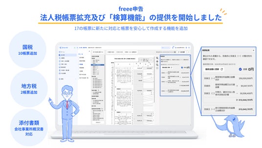 フリー株式会社(本社:東京都品川区、CEO:佐々木大輔、以下「freee」)は、税務申告サービス「freee申告」において、対応する法人税帳票の拡充と検算機能の提供を開始しました。
