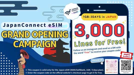 これを記念し、インバウンドストア限定で「先着3,000名様」に日本国内で利用できるeSIM(合計1GB・有効期間3日間)を無料配布するキャンペーンを実施します。