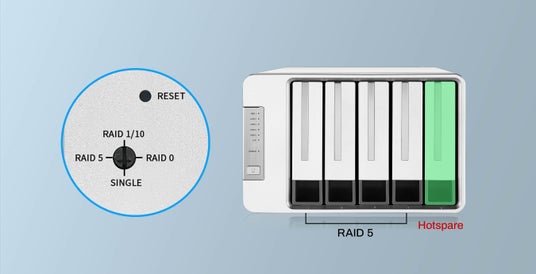 D5-310は、従来のソフトウェア RAID 設定の手間を省くため、ハードウェア RAID モード切り替えノブを搭載しております。RAID 5、RAID 0、RAID 1、RAID 10、シングルディスクモードを物理スイッチで簡単に選択でき、データ保護とパフォーマンスのニーズに柔軟に対応可能です。