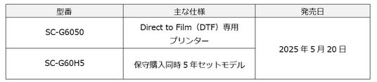 エプソン販売株式会社は、2025年1月22日に発表したDirect to Film(DTF)専用プリンター「SC-G6050」の発売日につきまして、以下の通り決定しましたのでお知らせします。