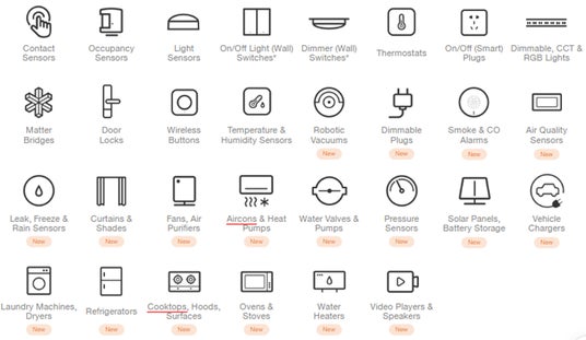 Aqara Homeは幅広いMatterデバイスタイプに対応しており、ロボット掃除機、空気洗浄機、冷蔵庫など一般的なデバイスはもちろん、一部の特殊なデバイスにも対応しています。