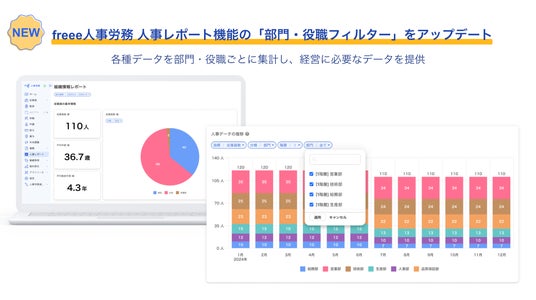 フリー株式会社(本社:東京都品川区、CEO:佐々木大輔、以下「freee」)が提供するfreee人事労務の人事レポート機能において、「部門・役職フィルター」をアップデートしました。