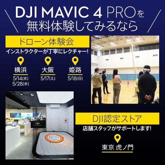 5月14日(水)・28日(水)に横浜、5月17日(土)に大阪、5月18日(日)に姫路にて、Mavic 4 Pro を実際に操縦し、その性能をご体感いただける無料イベントを開催します。