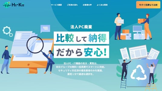 双日株式会社(以下「双日」)は、法人が使用した中古パソコンなどのIT機器の買い取りについて、見積もりの一括取得から比較、契約締結までをワンストップで行うことができる国内初(※1)のプラットフォームサービス「Hi(ハイ)-Kii(キー)」(以下「本サービス」)を5月14日より開始しました。IT機器を廃棄したいユーザー企業は、信頼性の高いITAD(アイタッド)(※2)企業に使用済みIT機器の処分を委託し、IT資産の情報セキュリティを担保しながらリユースやリサイクルに回すことができます。双日は、IT機器のリユース・リサイクル事業で得た知見を活かして本サービスを提供することで、IT資産の適切な処理や活用と、都市鉱山のリサイクルを両輪で促進し、さらなる循環型社会の実現に寄与します。
