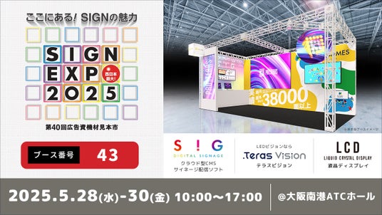 株式会社プロテラスは2025年5月28日(水)~30日(金)に大阪南港ATCホールで開催される「SIGN EXPO 2025 第40回広告資機材見本市」に出展いたします。