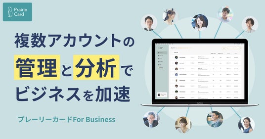 法人向け「プレーリーカード for Business」では、プレーリーカードの基本機能に加えて、専用の管理画面上で複数アカウントの一括作成、一括管理、分析などが可能です