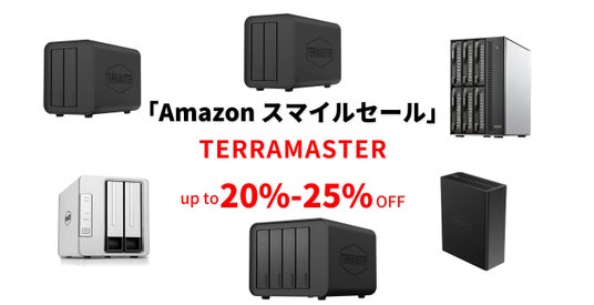 TERRAMASTER(本社:中国・深圳)は、Amazon.co.jpの「スマイルセール」期間中、NAS(ネットワーク接続ストレージ)およびDAS(直接接続ストレージ)製品を特別価格で提供いたします。