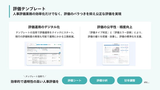 ・多様な評価項目や形式を網羅したテンプレートを用意しており、直感的な操作で評価プロセスの標準化と効率化が可能です。