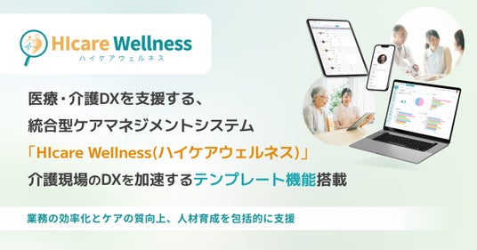 株式会社プラスアルファ・コンサルティング(本社:東京都港区、代表取締役社長:三室 克哉、証券コード:4071)は、医療・介護現場におけるデータを一元管理し、業務効率化を支援する統合型ケアマネジメントシステム 「HIcare Wellness(以下:ハイケアウェルネス)」 は、介護・福祉現場に特化した各種テンプレート機能を新たに搭載しましたことをお知らせいたします。