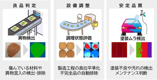 今回は、ハイパースペクトルカメラ試作機に加え、独自のAI画像検査ソフトとの連携によって被写体の状態を自動判別するソリューションを出展します。ファクトリーオートメーションにおける検査工程を想定し、ベルトコンベア上を移動する被写体のハイパースペクトル画像を撮影。AI学習を通じて被写体の状態を把握し自動判別を行う、より実用性の高いソリューションを提案します。また、可視光領域におけるハイパースペクトルカメラの技術を赤外光領域(短波赤外)に応用した『赤外ハイパースペクトルカメラ』の実演デモも行います。