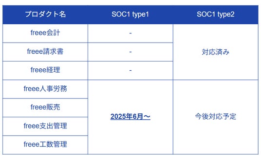 - freee人事労務・freee販売・freee支出管理・freee工数管理の4つのプロダクトにおいて、「SOC1 Type1報告書」を受領しました