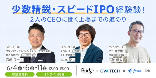 IPO準備・上場企業を対象としたセミナー「少数精鋭・スピードIPO経験談!2人のCEOに聞く上場までの道のり」を6月に全3回で開催します。