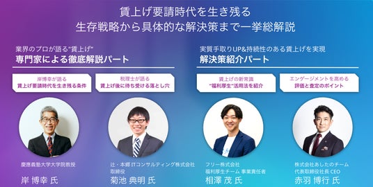 フリー株式会社(本社:東京都品川区、CEO:佐々木大輔、以下「freee」)の提供するfreee福利厚生は、2025年4月に開催し4,000名が申し込んだセミナー内容を要約した「給与を上げない賃上げ徹底攻略ガイドブック」を公開したことをお知らせします。