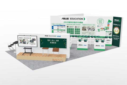 ASUSブースでは、GIGAスクール構想 第2期対応の法人、教育向けの最新端末を最大規模で展示し、児童・生徒向けの最新の「ASUS Chromebook」および教員の授業用、校務用に最適で、処理能力が向上したAI機能を搭載している「ASUS Chromebook Plus」シリーズのご紹介をはじめ、法人向けブランド「ASUS Expertシリーズ」も展示し、ASUSのAI機能「ASUS AI ExpertMeet」を体験することができます。