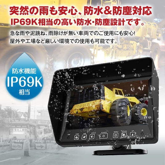 屋外や工場など厳しい環境での使用も可能なIP69K相当の高い防水・防塵設計を備えた7インチ防水モニターです。