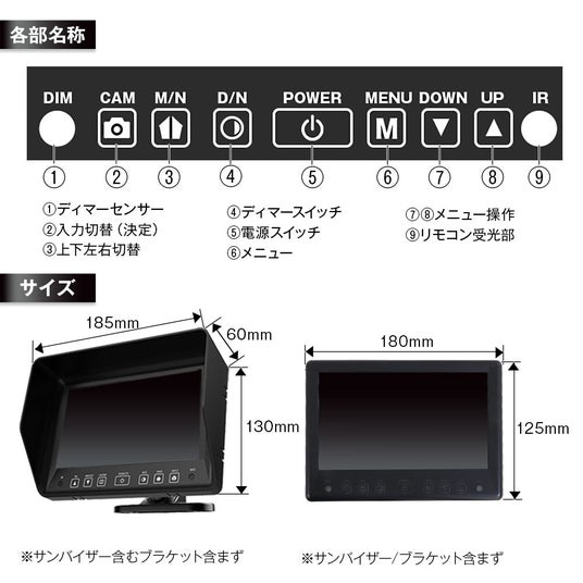 本体サイズ:約180(W)×125(H)×35(D)mm(サンバイザー・ブラケット等含まず)